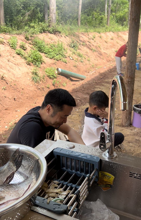 拾來柴火,燒起灶火,大伙兒擼起領口、戴上胸圍裙,宰雞撈魚、打水洗碗、刷鍋配菜,動員齊出戰,忙得樂不可支,歡呼聲喜悅、一整塊歷程其樂煦煦。
